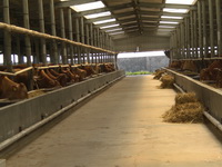 公司直屬優(yōu)質肉牛育肥場,位于平度市田莊鎮(zhèn)宮東村南1公里處,始建于2009年3月,設計存欄3000頭,現存欄1000余頭,占地100多畝,現有建筑面,18600平方米。公司擁有一批具有養(yǎng)牛經驗的管理、技術、飼養(yǎng)人員。聘請了全國養(yǎng)牛方面的知名專家作為技術顧問。養(yǎng)牛場現有職工23人,具有初、中級以上技術等級和從事養(yǎng)牛5年以上的工人占70%以上,有管理和技術人員5人,其中畜牧獸醫(yī)專業(yè)中、高級以上職稱3人。本公司通過食品安全認證、質量體系、無公害認證,是國家地理標志保護產品。是肉牛定點屠宰單位。被評為“島城市民最喜愛的農產品品牌”、第一批“平度好食材”。本公司肉牛養(yǎng)殖場喂牛所用飼料全部采用自己配制的飼料,主要使用大豆、玉米、麩皮,大豆經炒料機炒熟后再分碎飼喂,無任何添加劑。公司有火鍋料理店6處,安排從業(yè)人員80多人。公司擁有年屠宰加工1萬頭肉牛的屠宰生產線,嚴格執(zhí)行國家GB/T17238-2008鮮凍牛肉分割標準,并按伊斯蘭清真屠宰要求進行屠宰分割以及排酸嫩化處理。我公司生產的牛柳、西冷、肉眼、上腦、S腹肉等產品主要銷往上海,北京,南京,濟南,青島,煙臺等大中城市的四、五星級酒店,用作西餐、韓餐、日餐、中餐等深受用戶青睞。